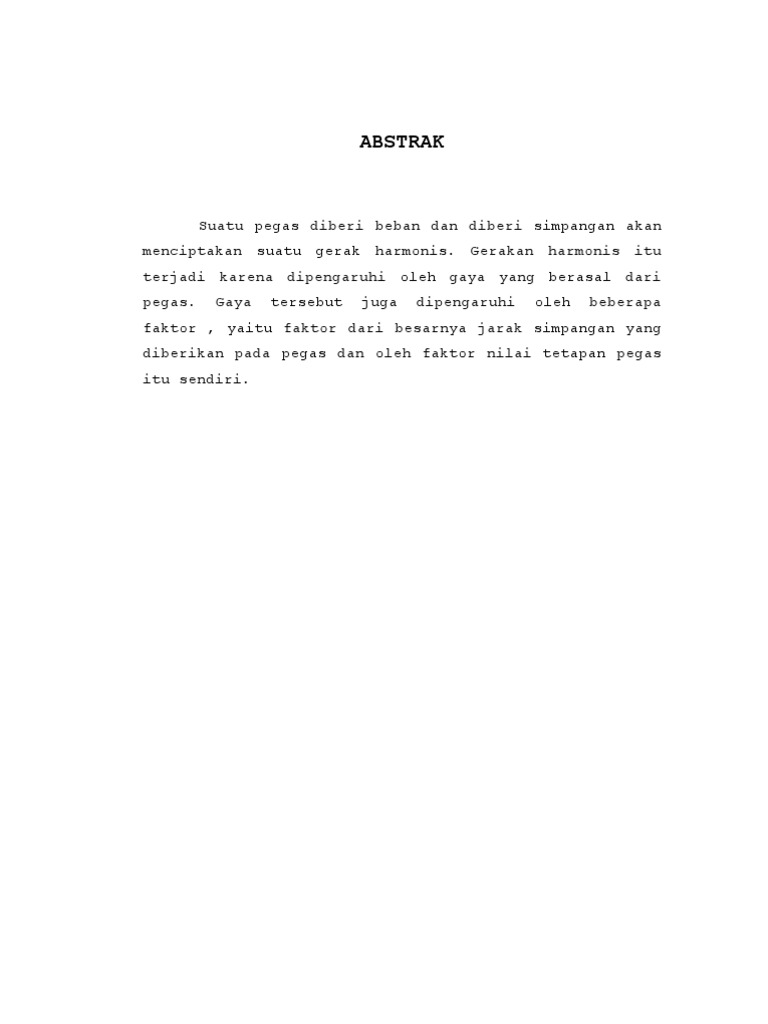 FMIPA ABSTRAK TETAPAN PEGAS Pegas merupakan bilah baja tipis yang dapat melenting. Pegas dapat dibuat dalam berbagai jenis dan ukuran dari hampir semua bahan yang memiliki elastisitas kemampuan untuk mendapatkan kembali bentuk dan ukuran setelah deformasi. Pegas biasanya terbuat dari baja.