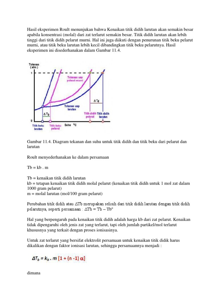 Hasil Eksperimen Roult Menunjukan Bahwa Kenaikan Titik Didih Larutan Akan Semakin Besar Apabila Konsentrasi