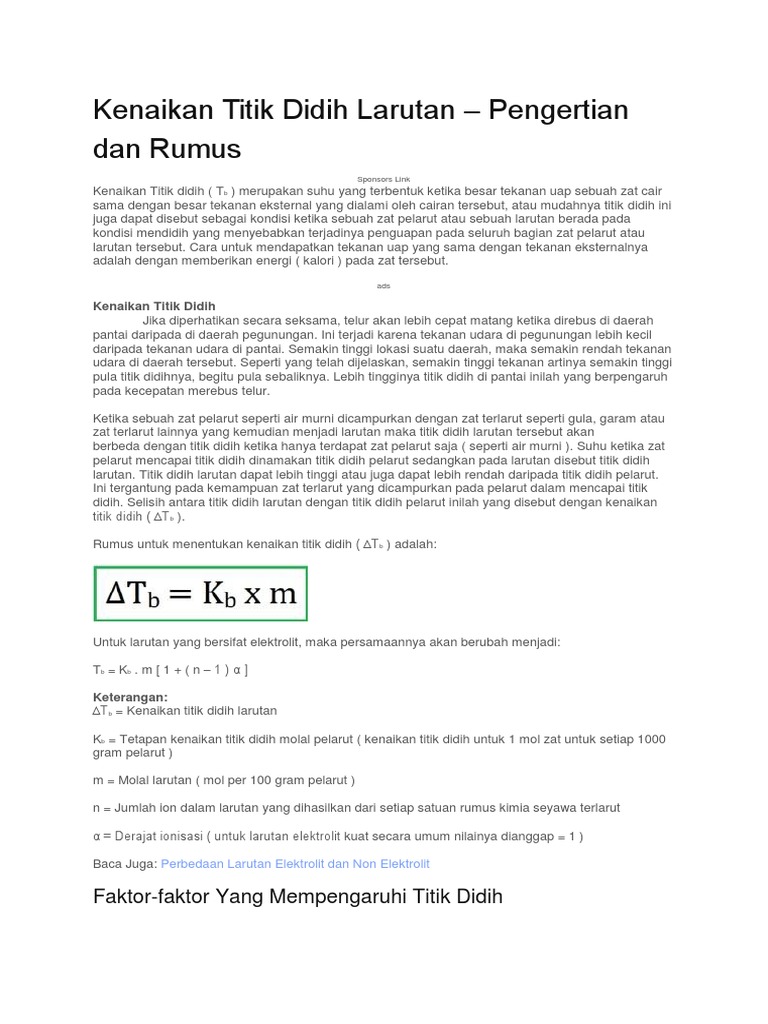 Titik Didih Pengertian Kenaikan Rumus Dan Contoh Soal