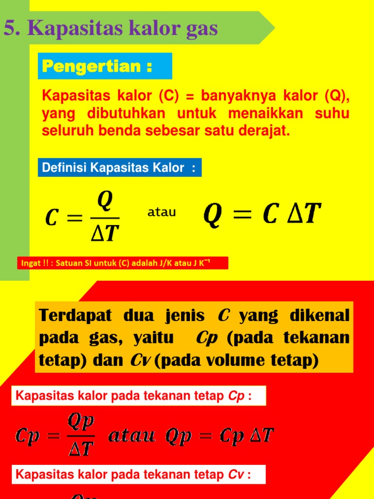 Tetapan Laplace notasi γ didefinisikan sebagai nilai perbandingan antara kapasitas kalor pada tekanan tetap dengan kapasitas kalor pada volum tetap. Termodinamika merupakan suatu ilmu yang menggambarkan usaha untuk mengubah kalor perpindahan energi yang disebabkan perbedaan suhu. Perhatikan Cp Cv maka pastilah γ 1.