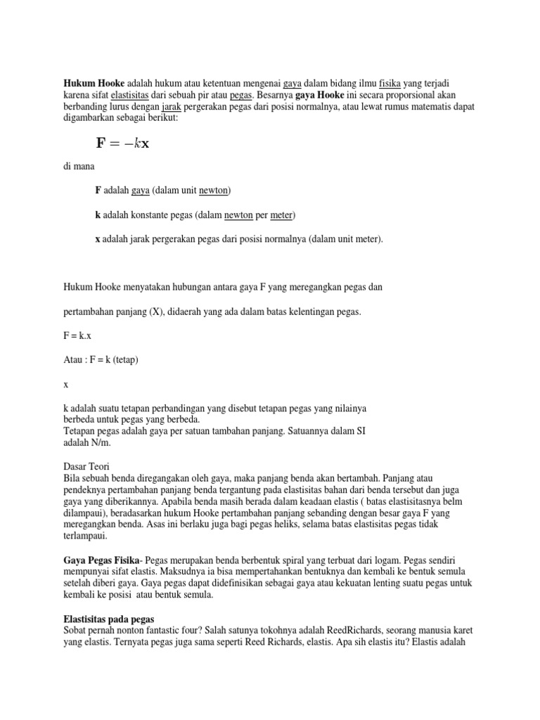 Bunyi Soal Rumus Aplikasi Hukum Hooke Elastisitas