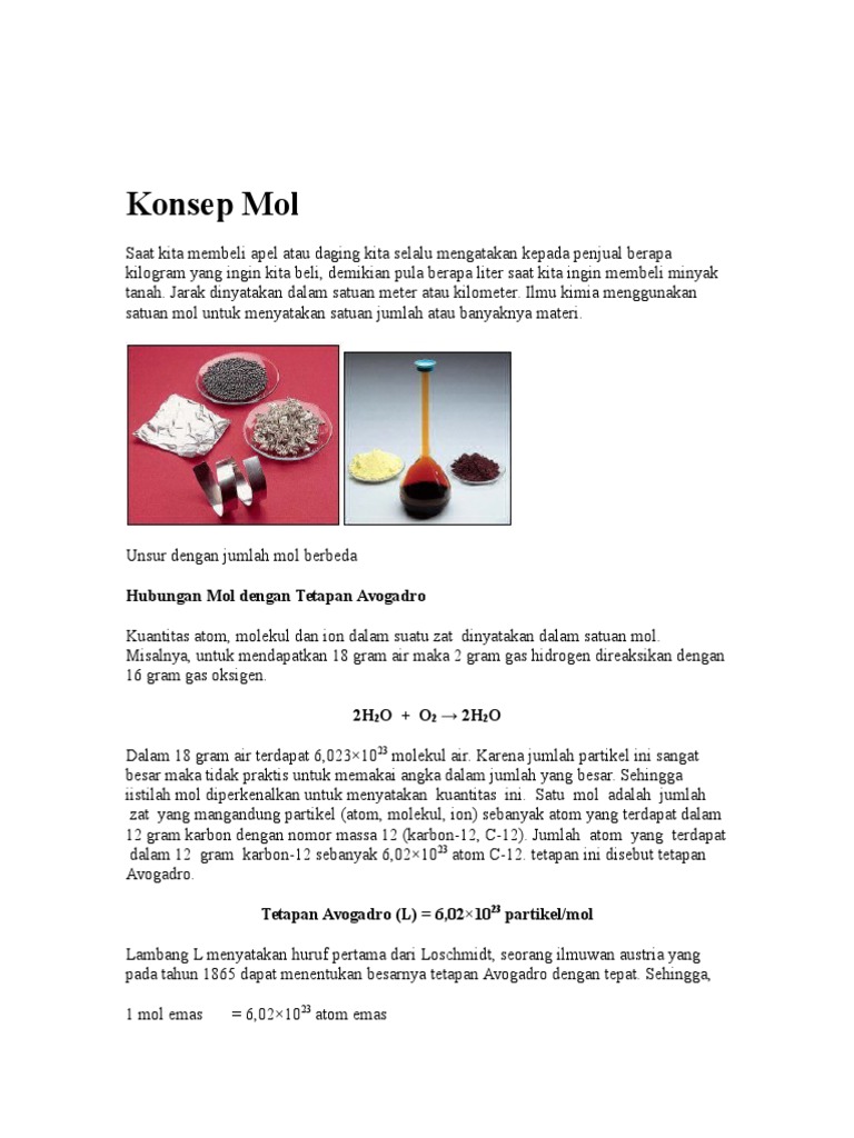 Konsep Mol dan Tetapan Avogadro. Jika lusin menyatakan jumlah 12 buah mol menyatakan jumlah 6022 x 10 23 partikel zat.