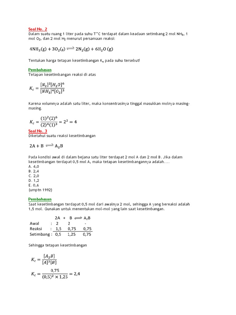 Contoh Soal Dan Pembahasan Kesetimbangan Kimia Pdf Document