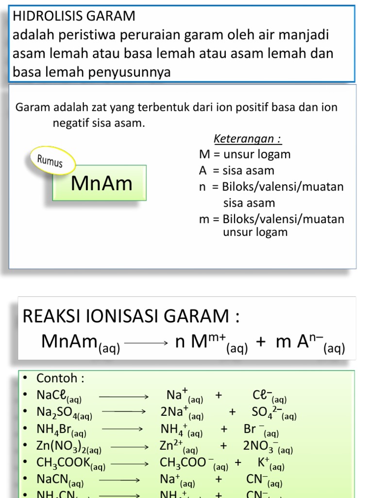 Pasangan garam yang terhidrolisis ialah. Hidrolisis Garam Dalam tulisan ini kita akan membahas pengertian garam reaksi pembentukan garam reaksi penguraian ion-ion garam oleh air serta perhitungan pH larutan garam. Harga tetapan hidrolisis Kb.