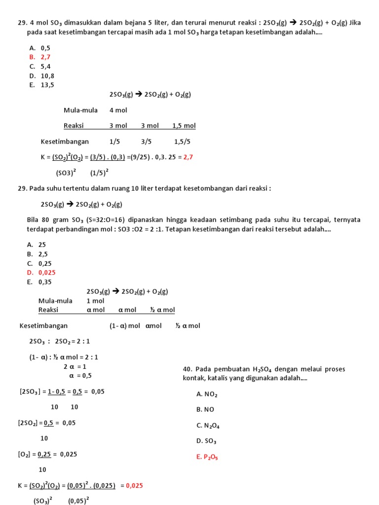 O 2 2. Pada suhu 400 K dan dalam ruang 1 liter tetapan kesetimbangan reaksi. 1 dan tekanan gas SO 3 19 atm.