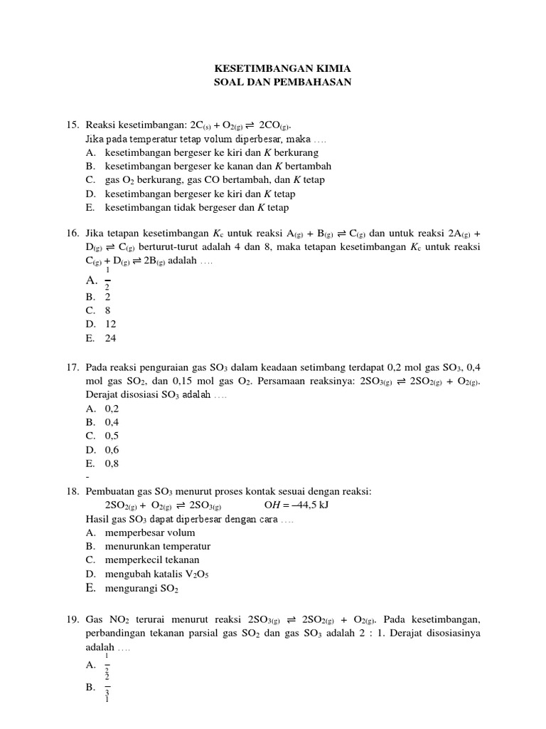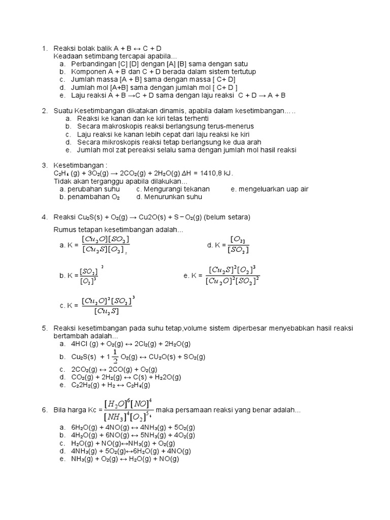 Rangkuman Materi 44 Contoh Soal Reaksi Kesetimbangan Dan Pembahasannya